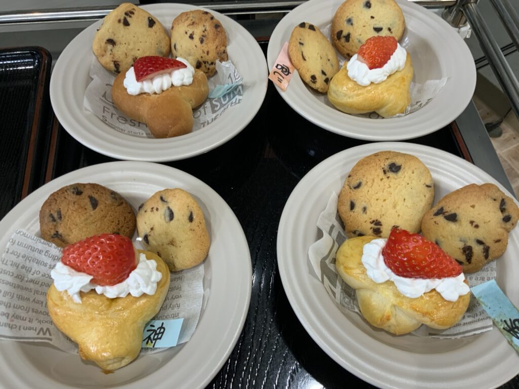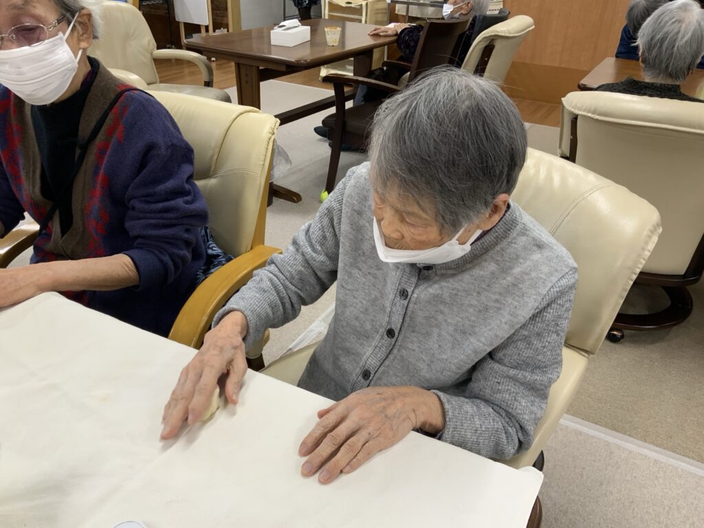 今日のおやつは皆んなで作った手作りパンです。