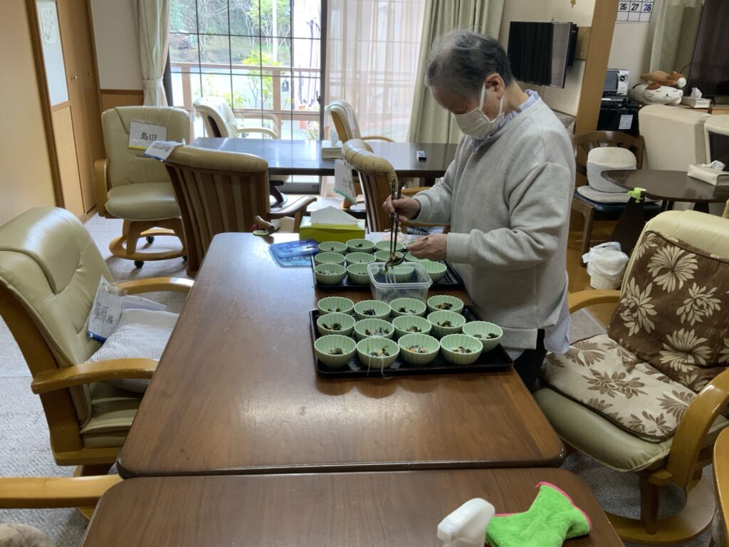 手指作業や日常生活動作訓練等を進んで参加されております。
