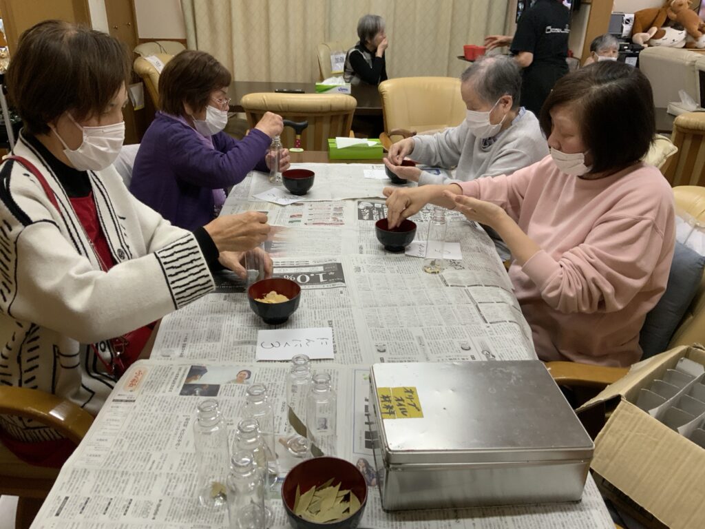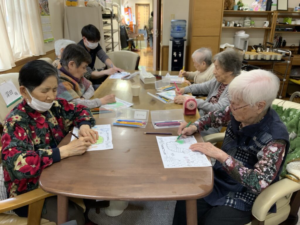 午後はオリーブオイル作りや塗り絵等、指先を使って
